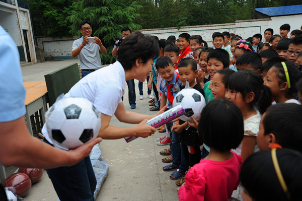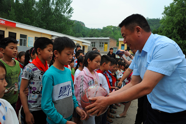 六一前夕,開元集團(tuán)董事長許明月在得知洛寧縣東宋鎮(zhèn)郭村小學(xué)桌椅陳舊、體育器材短缺的消息后,安排購置了80套桌椅板凳、1副藍(lán)球架、1張乒乓球臺(tái)、5個(gè)足球、5個(gè)籃球、2副羽毛球拍、2副乒乓球拍等價(jià)值2萬余元物資,帶去開元人的深情厚誼。
